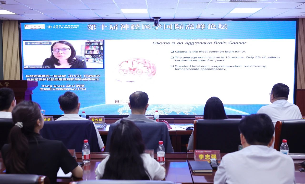 Rong Grace Zhai教授作“煙酰胺腺嘌呤二核苷酸(NAD)代謝調節(jié)在神經(jīng)保護和膠質瘤發(fā)病機制中的兩面性”學術報告。她重點圍繞NAD與腫瘤發(fā)生的相關性、NAD代謝對腫瘤細胞的影響等方面進行了精彩講解,其研究團隊正在開發(fā)針對NMNAT1抑制劑以降低其在膠質瘤中的表達,同時提高NMNAT2在神經(jīng)元中的表達,以抑制膠質瘤的發(fā)生并增強神經(jīng)保護功能,為膠質瘤治療帶來新希望。