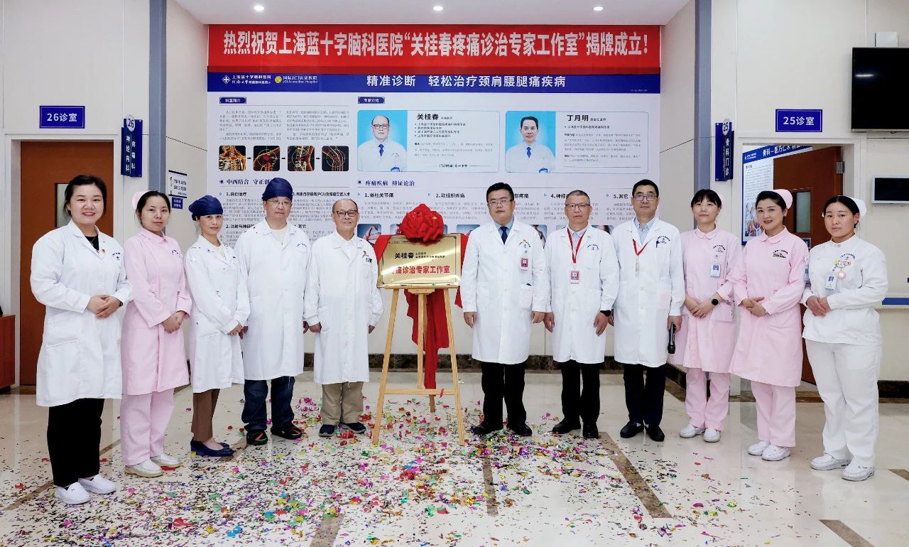 5月26日,上海藍(lán)十字腦科醫(yī)院“關(guān)桂春疼痛診治專家工作室”正式揭牌成立。醫(yī)院總經(jīng)理兼黨支部書記朱敏,副院長潘耀良、周克祥,副總經(jīng)理吳春芳等院領(lǐng)導(dǎo),以及疼痛科專家、門診部負(fù)責(zé)人等出席揭牌儀式。