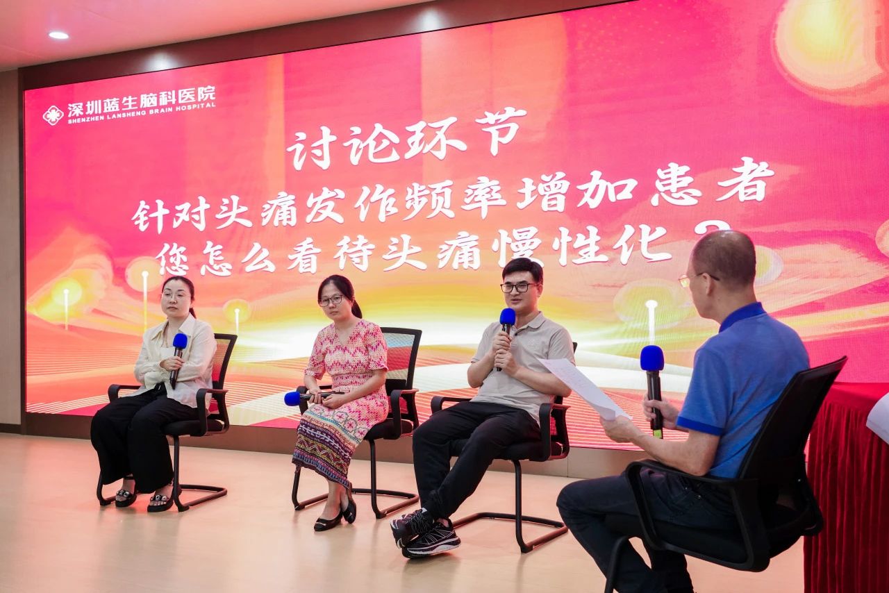論壇特別設置了討論環(huán)節(jié),由深圳藍生腦科醫(yī)院神經內科主任張強主持,深圳市卒中學會頭痛分會秘書長陳思展、北京大學深圳醫(yī)院神經內科主任林凱華等多位專家共同參與,圍繞如何看待“頻繁發(fā)作的偏頭痛可能演變?yōu)槁云^痛,增加臨床管理難度”這一臨床熱點展開深度探討。