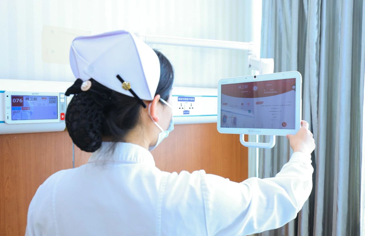 除了上文提及的“移動(dòng)醫(yī)療工作站”,目前“護(hù)士站看板終端”“多功能智護(hù)屏”等十余個(gè)智能系統(tǒng)均已在院方全部病區(qū)投入使用,取得了極好的效果。通過(guò)護(hù)士站看板終端,醫(yī)護(hù)人員可一端完成從呼叫管理到護(hù)理管理的一系列工作,并通過(guò)智能輸液管理、生命體征智能采集、智能防跌倒監(jiān)測(cè)、血糖管理、智慧床旁交互、智能呼叫等多個(gè)系統(tǒng),讓病區(qū)護(hù)理實(shí)現(xiàn)智慧化,從繁瑣的事務(wù)性工作中解放出來(lái);住院患者只需動(dòng)一動(dòng)床旁的“多功能智護(hù)屏”,按提示操作就可完成呼叫、查詢費(fèi)用、報(bào)告查看、影音娛樂(lè)、健康宣教、床旁點(diǎn)餐、滿意度調(diào)查等,一個(gè)智護(hù)屏就相當(dāng)于患者的“數(shù)字陪護(hù)員”。