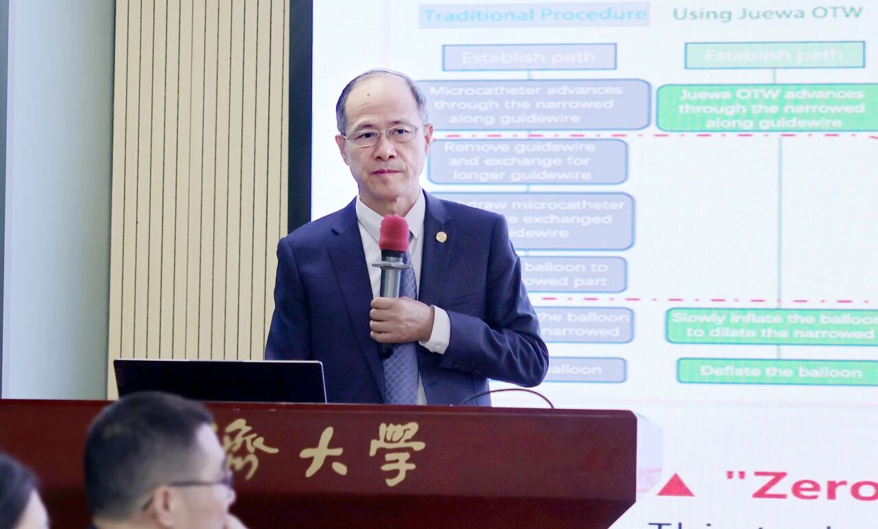 手術過程中,席剛明教授、王貴平博士團隊通過一個微創(chuàng)通道,高效完成了微導管超選、球囊擴張與支架釋放等一系列復雜操作,將傳統(tǒng)術式中所需的多次導管交換步驟簡化為一體化的流暢流程,顯著縮短了手術時間,降低了術中栓塞等風險。