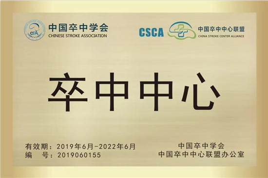 2019年6月通過中國卒中學(xué)會(huì)、中國卒中中心聯(lián)盟辦公室“卒中中心”認(rèn)證,標(biāo)志著我院在腦卒中防治一體化建設(shè)上邁進(jìn)新臺(tái)階,為卒中患者提供更加便捷、高效、優(yōu)質(zhì)的救治與康復(fù)服務(wù)。
