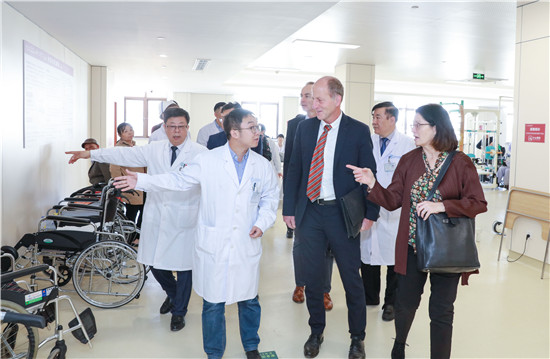 Prof.Dr.Michael Bolker一行先后參觀醫(yī)院門診大廳、中藥房、神經內科病房、腦復蘇中心、新康復科大廳、放射檢驗大廳等。