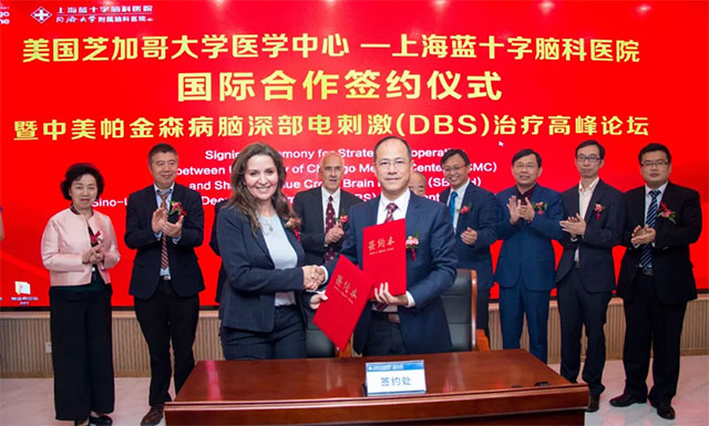 10月29日,芝加哥大學(xué)醫(yī)學(xué)中心 ( The University of Chicago Medicine,簡(jiǎn)稱:芝大醫(yī)學(xué)中心 UCM ) —上海藍(lán)十字腦科醫(yī)院國(guó)際合作簽約儀式暨中美帕金森病腦深部電刺激(DBS)治療高峰論壇在上海藍(lán)十字腦科醫(yī)院成功舉行。全天議程共有三項(xiàng),具體為:雙方洽談及病例討論、國(guó)際合作簽約儀式,中美醫(yī)學(xué)專家關(guān)于帕金森病腦深部電刺激 (DBS) 治療高峰論壇。