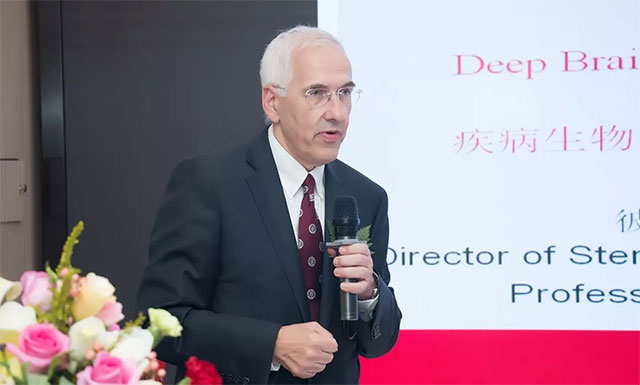 ▲ Prof. Peter C Warnke,MD,PhD 作題為“疾病生物學(xué)指導(dǎo)下的帕金森病腦深部電刺激——影像學(xué)和低頻電刺激”的學(xué)術(shù)報(bào)告