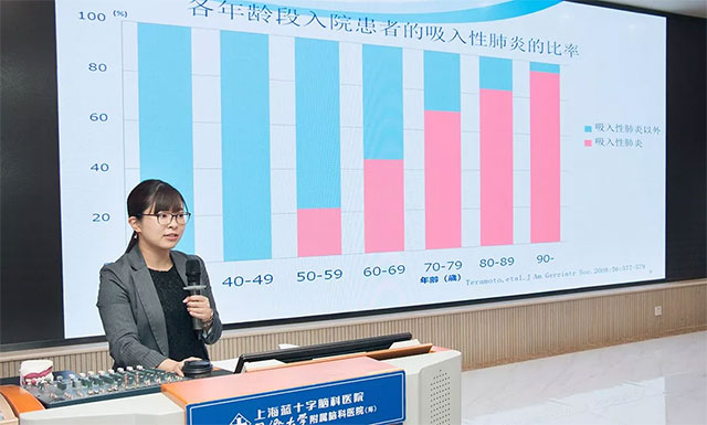 首先,永田彩老師就口腔護(hù)理理論及實(shí)際操作進(jìn)行了講解。永田彩老師介紹到,隨著中國(guó)老年人口的不斷增長(zhǎng),老齡化趨勢(shì)越來(lái)越嚴(yán)重,到2050年中國(guó)老年人占比將達(dá)到27.6%,將與現(xiàn)在的日本老齡化相差無(wú)幾。在中國(guó)城市居民的六大死因中,呼吸系統(tǒng)疾病排第四位,而65歲以上的老人因肺炎的死亡率占比高達(dá)36%以上;80以上高齡者肺炎成為死亡的第一大原因,并以吸入性肺炎為主,因此老齡患者“吸入性肺炎”預(yù)防已成為護(hù)理工作的重中之重。
