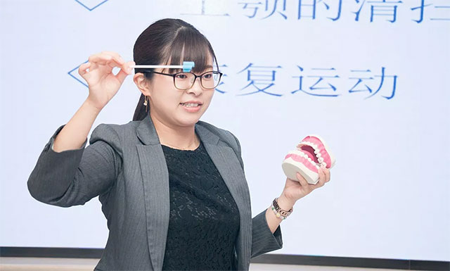▲ 永田彩老師生動(dòng)細(xì)致講解口腔護(hù)理