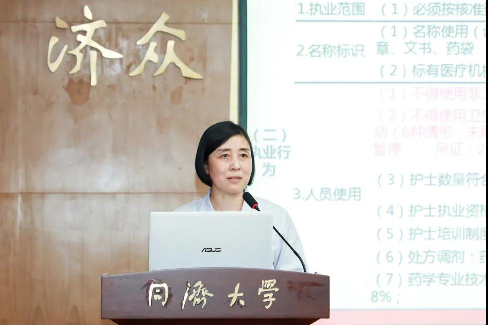 朱鳳鳴科長從依法執(zhí)業(yè)專項(xiàng)整治基本概念、整治背景、執(zhí)業(yè)要點(diǎn)、工作要求四個(gè)方面進(jìn)行講解,并結(jié)合醫(yī)院實(shí)際情況進(jìn)行分析探討。她指出,近年來,社會(huì)辦醫(yī)療蓬勃發(fā)展,相關(guān)政策出臺(tái)密集,依法執(zhí)業(yè)、依法行醫(yī)是醫(yī)療機(jī)構(gòu)可持續(xù)發(fā)展的保證。她強(qiáng)調(diào),要結(jié)合上海市開展的“白玉蘭專項(xiàng)行動(dòng)”,做到自查自糾全覆蓋;對(duì)照標(biāo)準(zhǔn)建立詳細(xì)自查報(bào)告;按照院科兩級(jí)管理模式壓實(shí)責(zé)任,加強(qiáng)督查,抓實(shí)TQM考核,抓大不放??;不斷完善各項(xiàng)規(guī)章制度;嚴(yán)格依法執(zhí)業(yè),規(guī)范診療行為;加強(qiáng)日常管理和人員培訓(xùn),建立長效機(jī)制;全方位、多角度、深程度加強(qiáng)科室管理,推動(dòng)醫(yī)院管理水平再上新臺(tái)階。