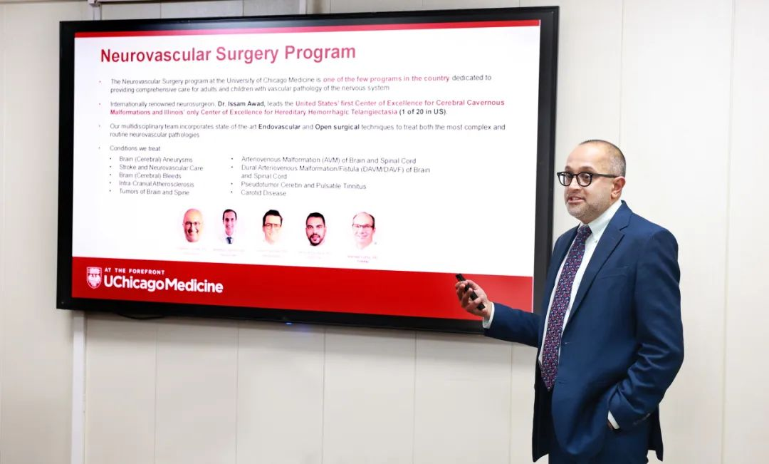 芝加哥大學(xué)醫(yī)學(xué)中心神經(jīng)科主任Shyam Prabhakaran博士則詳細(xì)介紹了科室情況。他表示,芝加哥大學(xué)醫(yī)學(xué)中心神經(jīng)科實力雄厚,在《美國新聞和世界報道》評選的神經(jīng)病學(xué)和神經(jīng)外科項目中排名前50名。