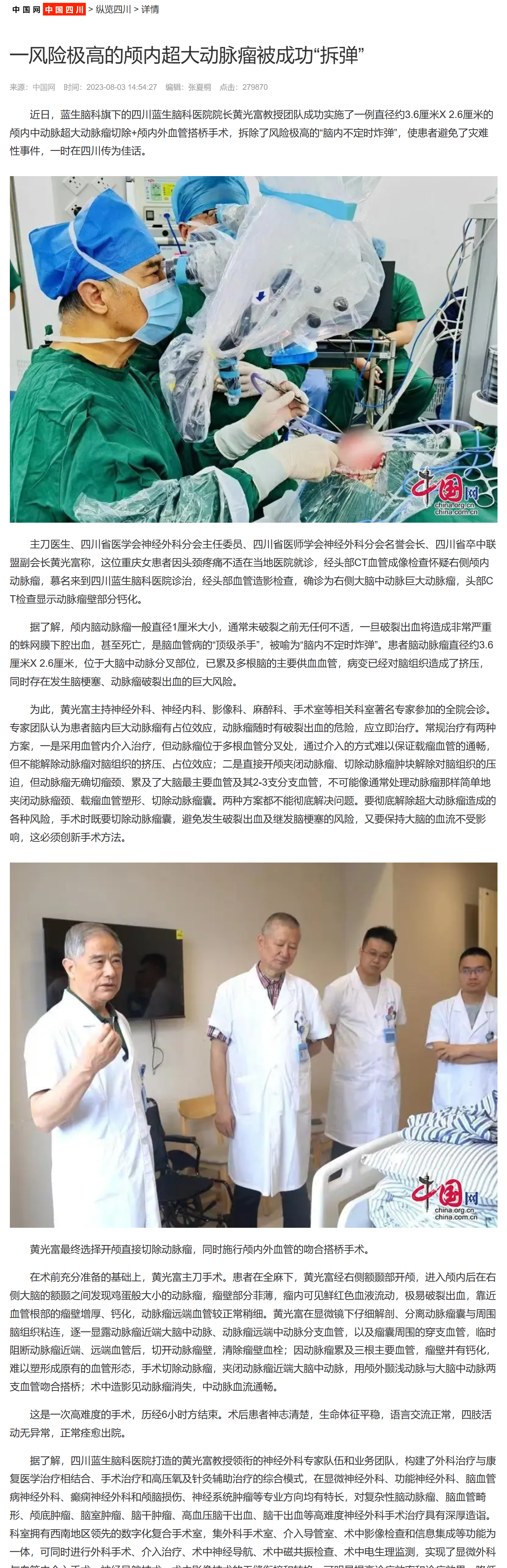 中國網(wǎng):一風(fēng)險(xiǎn)極高的顱內(nèi)超大動脈瘤被成功“拆彈”