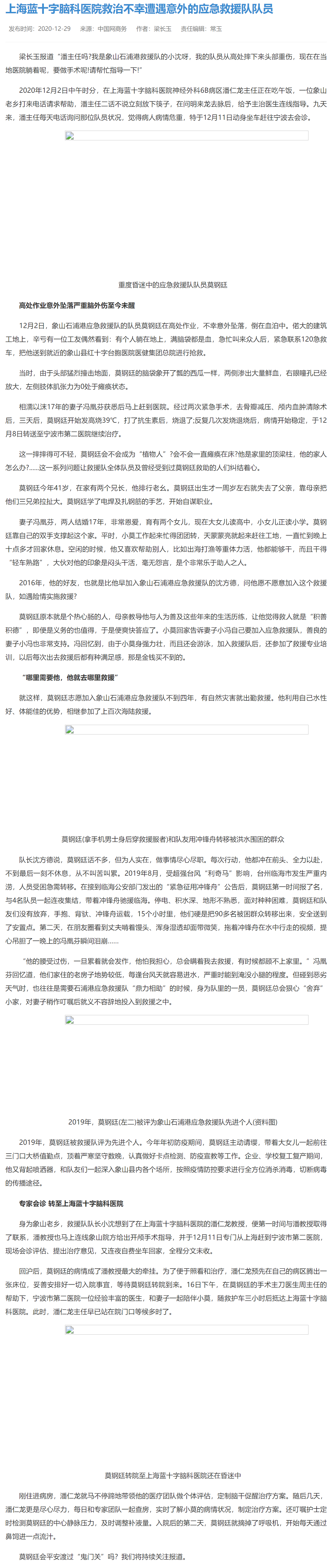 梁長玉報(bào)道“潘主任嗎?我是象山石浦港救援隊(duì)的小沈呀,我的隊(duì)員從高處摔下來頭部重傷,現(xiàn)在在當(dāng)?shù)蒯t(yī)院躺著呢,要做手術(shù)呢!請幫忙指導(dǎo)一下!”