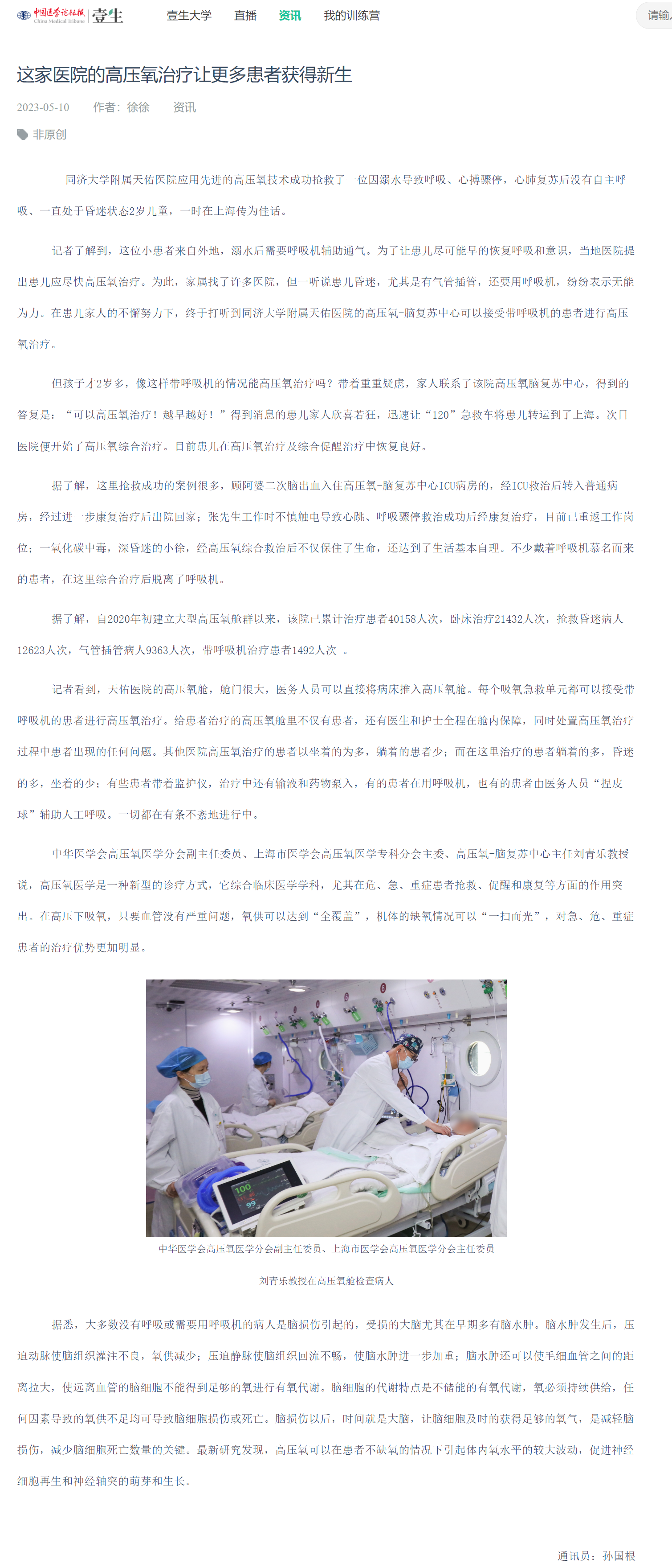 同濟(jì)大學(xué)附屬天佑醫(yī)院應(yīng)用先進(jìn)的高壓氧技術(shù)成功搶救了一位因溺水導(dǎo)致呼吸、心搏驟停,心肺復(fù)蘇后沒有自主呼吸、一直處于昏迷狀態(tài)2歲兒童,一時(shí)在上海傳為佳話。