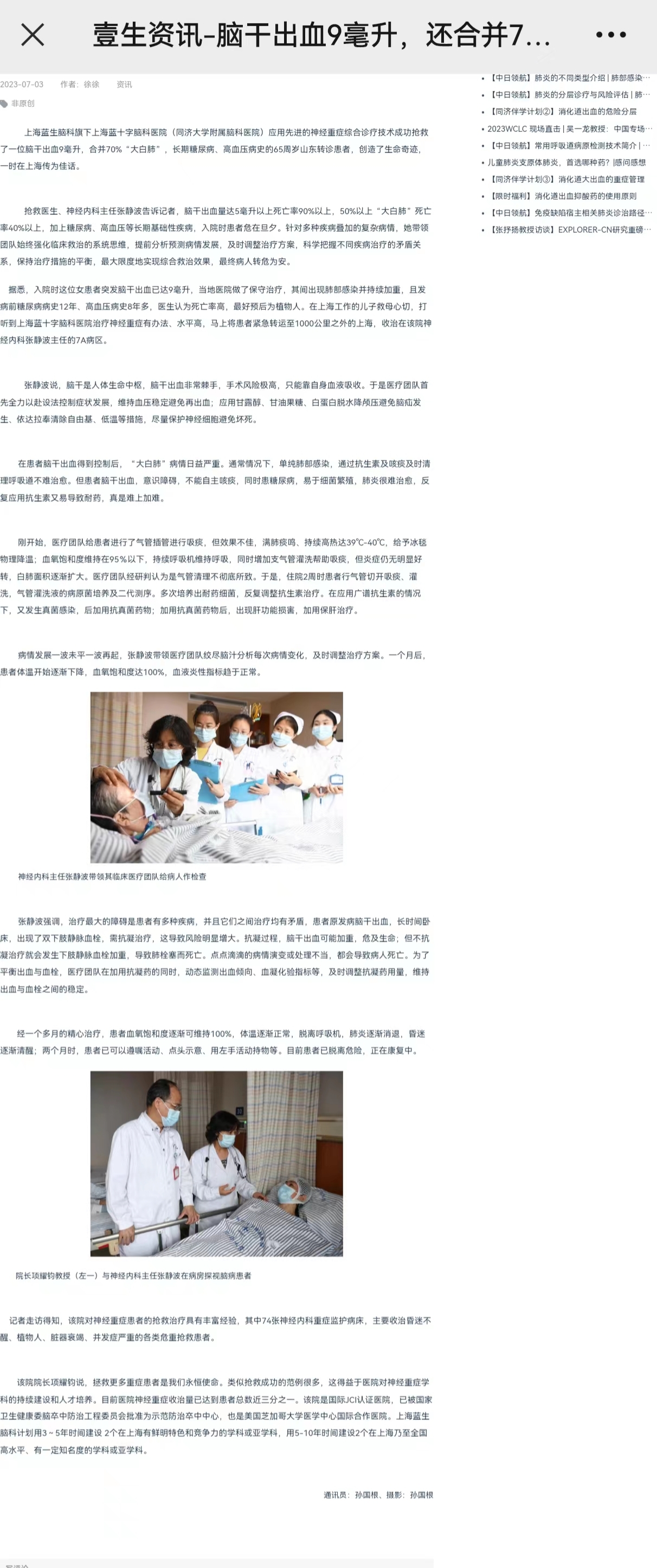 中國醫(yī)學(xué)論壇報(bào):腦干出血9毫升,還合并70%“大白肺”的極高?;颊咴谏虾+@救