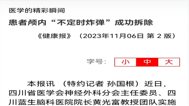 健康報:患者顱內(nèi)“不定時炸彈“成功拆除
