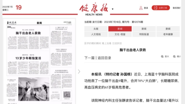 今日頭條:創(chuàng)造生命奇跡,一腦干出血9毫升的極高?;颊咴跍@救