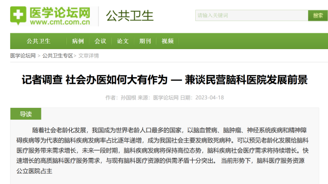 記者調(diào)查 社會(huì)辦醫(yī)如何大有作為 — 兼談民營(yíng)腦科醫(yī)院發(fā)展前景