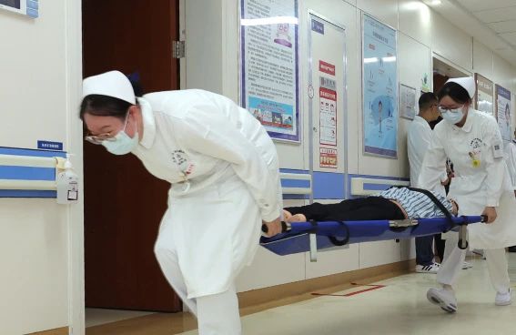 緊急疏散:科室消防安全員高效組織病區(qū)患者及家屬疏散。對(duì)于行動(dòng)不便者,采用擔(dān)架抬運(yùn)、背負(fù)或輪椅轉(zhuǎn)運(yùn)等多種方式,沿預(yù)設(shè)的A區(qū)(寶南路)、B區(qū)(七莘路)雙安全通道,迅速轉(zhuǎn)移至指定集合點(diǎn)。