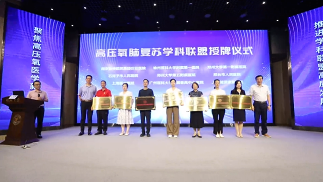 授牌儀式上,鄭州大學(xué)第一附屬醫(yī)院高壓氧治療中心護(hù)士長張潔代表新加盟單位發(fā)言。她在介紹科室的人員配備、學(xué)術(shù)發(fā)展、入盟初衷后表示,希望高壓氧腦復(fù)蘇學(xué)科聯(lián)盟能夠加大在科研方面的投入與合作力度,積極開展多中心、大規(guī)模的臨床研究,積極探索高壓氧治療在腦復(fù)蘇及其他相關(guān)疾病治療中的方案和治療機(jī)制,持續(xù)創(chuàng)新技術(shù)和方法,切實(shí)提高治療效果;加強(qiáng)對(duì)聯(lián)盟單位的幫扶與指導(dǎo),提升聯(lián)盟單位醫(yī)護(hù)人員對(duì)高壓氧治療和腦復(fù)蘇技術(shù)水平;促進(jìn)優(yōu)質(zhì)醫(yī)療資源下沉,讓更多患者能夠在當(dāng)?shù)叵硎艿揭?guī)范有效的高壓氧治療服務(wù),真正惠及廣大人民群眾。