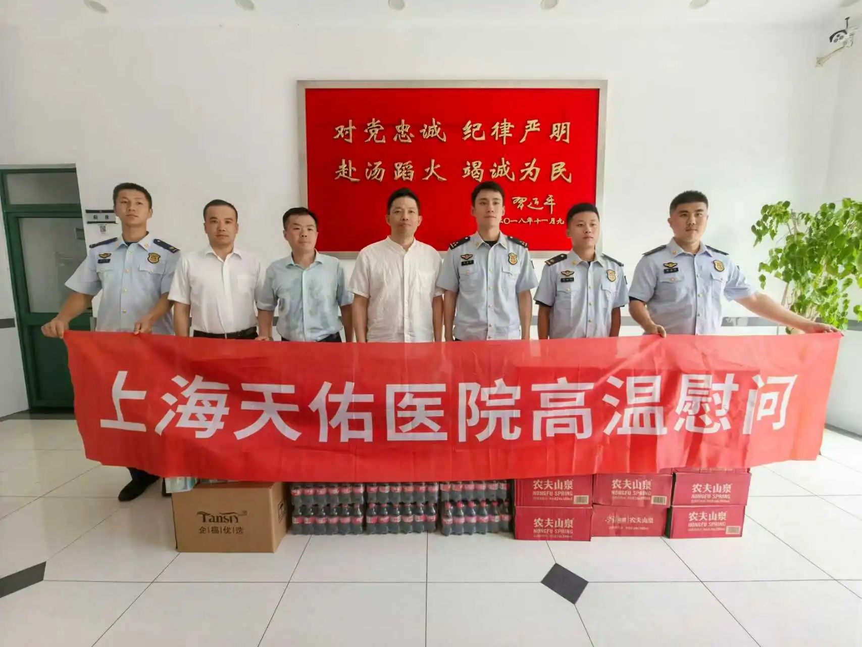 與此同時,天佑醫(yī)院還在共建單位間開展高溫慰問。8月6日下午,上海天佑醫(yī)院卓立峰總經(jīng)理一行前往上海市消防總隊普陀支隊萬里中隊高溫慰問,看望慰問一線消防戰(zhàn)士,送上防暑降溫用品,并向他們表示誠摯的問候和感謝。天佑醫(yī)院工會主席卓偉元、副總經(jīng)理孫凱陪同。