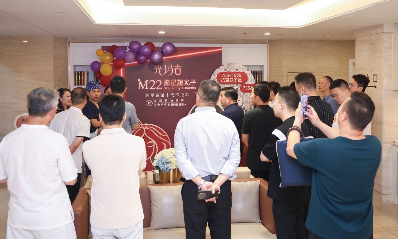 在醫(yī)療美容科,第八代M22 Stellar聚星超光子設備吸引了大家的關(guān)注。左進波博士介紹,該設備是科醫(yī)人新一代醫(yī)美專用設備,從2024年12月上市至今,上海地區(qū)僅有8臺,天佑醫(yī)院是其中之一,普陀區(qū)還是第一臺。該設備正式啟用,標志著醫(yī)美在光電治療領(lǐng)域邁入光子抗衰新階段。