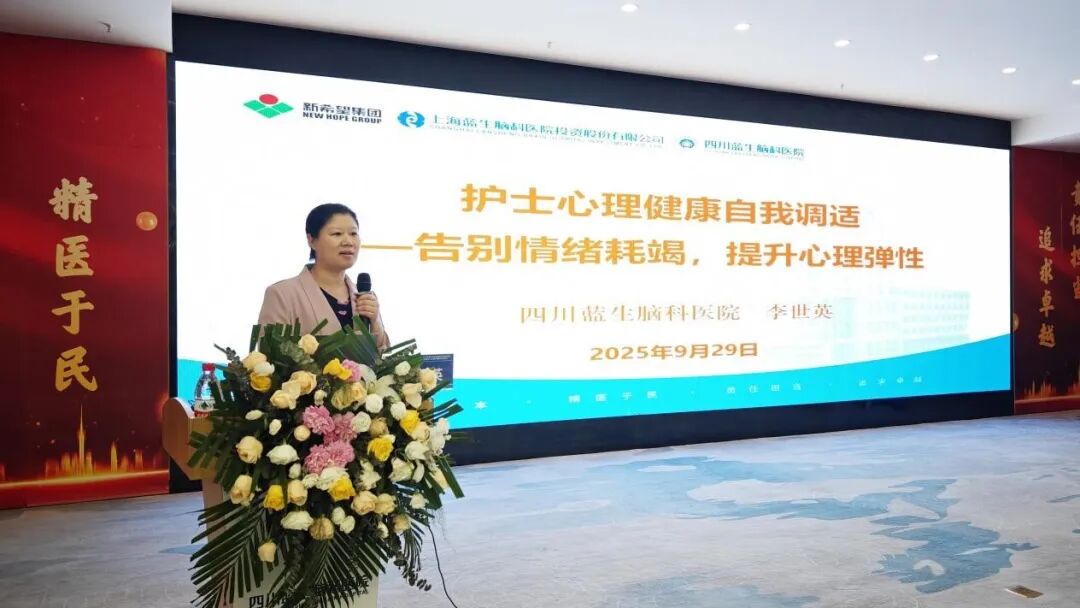 四川藍(lán)生腦科醫(yī)院李世英副主任護(hù)師針對護(hù)士常見情緒問題,開展《護(hù)士心理健康自我調(diào)適 —— 告別情緒耗竭,提升心理彈性》主題授課,提供實用的心理調(diào)適方法,助力護(hù)士緩解職業(yè)壓力。