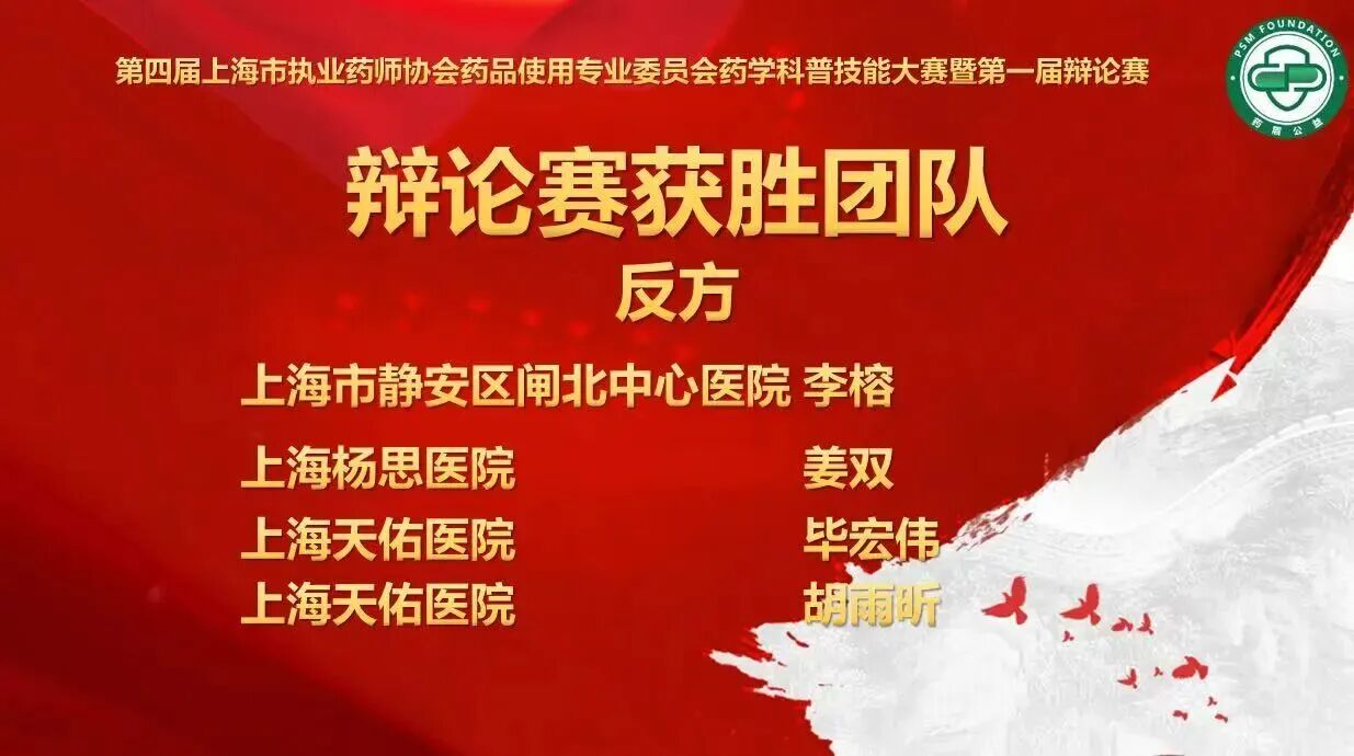 在隨后舉行的“藥青春·藥思辨”辯論賽上,天佑醫(yī)院畢宏偉、胡雨昕與兄弟醫(yī)院藥師組成聯隊,圍繞藥學服務熱點展開唇槍舌劍,最終奪得團隊優(yōu)勝;畢宏偉藥師憑借出色的臨場應變能力榮獲“最佳質詢攻辯獎”;胡雨昕以流暢的表達與優(yōu)雅的臺風摘得“最佳言語風采獎”。