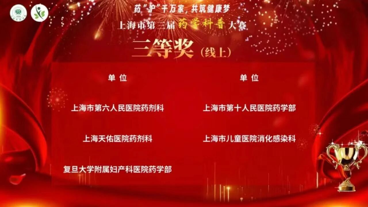在此次大賽前的10月22日,由上海市藥學會主辦,上海市藥學會科技傳播專委會與醫(yī)院藥學專委會共同承辦的“藥‘滬’千萬家,共筑健康夢——上海市第三屆藥學科普大賽”圓滿收官。本次大賽作為全市醫(yī)藥科普領域的重要品牌活動,自7月啟動以來,吸引了全市醫(yī)藥行業(yè)各單位以及廣大醫(yī)藥科技工作者的廣泛關注和踴躍參與,由多家醫(yī)院、高校選送150余件參賽作品,最終22組參賽隊伍晉級。天佑醫(yī)院名列其中。