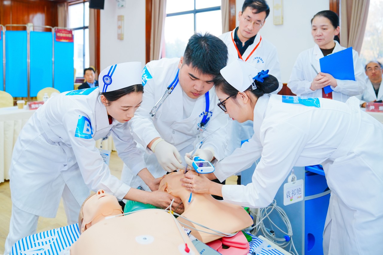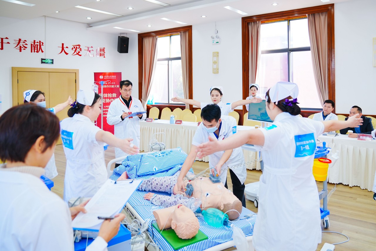 比賽圍繞“團(tuán)隊(duì)搶救協(xié)作”展開(kāi),從規(guī)范、熟練、人文等多維度進(jìn)行綜合評(píng)定,操作限時(shí)8分鐘。賽場(chǎng)上,各參賽團(tuán)隊(duì)精神飽滿、配合默契,以規(guī)范的操作和沉穩(wěn)的表現(xiàn),充分展現(xiàn)了醫(yī)護(hù)人員的專(zhuān)業(yè)素養(yǎng)與臨場(chǎng)應(yīng)變能力。