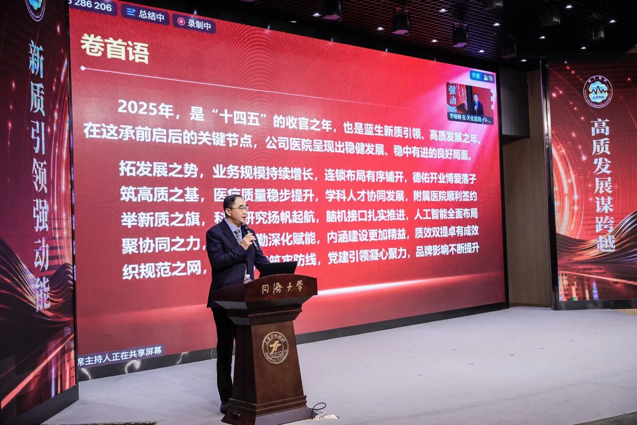 卓立強董事長表示,2025年度工作卓有成效、亮點紛呈,上海藍生德佑醫(yī)院順利開診,上海博愛醫(yī)院并購運行,深圳藍生腦科醫(yī)院與南方科技大學(xué)簽約共建,上海藍生宏德醫(yī)院成為杉達學(xué)院附屬醫(yī)院,三級醫(yī)師查房競賽成功舉辦,引進高層次專家128人,晉升高級職稱13人,取得國家級科研重點專項2項,前瞻布局人工智能診療體系,搶占腦機接口臨床應(yīng)用先機,芝加哥大學(xué)醫(yī)學(xué)中心續(xù)簽10年,克利夫蘭醫(yī)學(xué)中心高克明教授簽約合作,建立核心管理干部每月集中學(xué)習(xí)制度,連續(xù)6年開展全員績效考核述職評議……累累碩果凝結(jié)著全體藍生人的智慧和汗水。