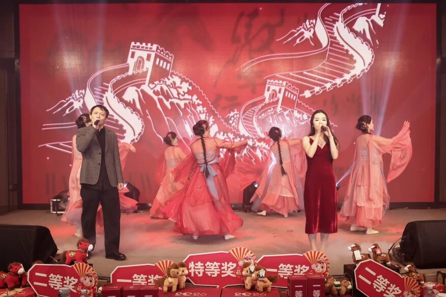 總結(jié)表彰大會結(jié)束,迎新年會在拜年的祝福聲中精彩啟幕。