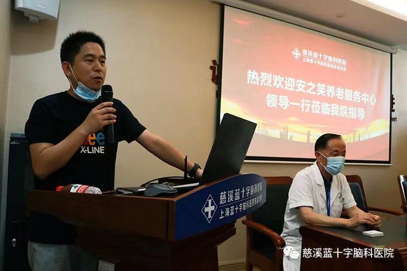 8月20日上午,慈溪安之笑健康養(yǎng)老公司董事長(zhǎng)宓立軍等一行30余人蒞臨公司旗下慈溪藍(lán)十字腦科醫(yī)院參觀考察,醫(yī)院領(lǐng)導(dǎo)班子陪同引導(dǎo)。
