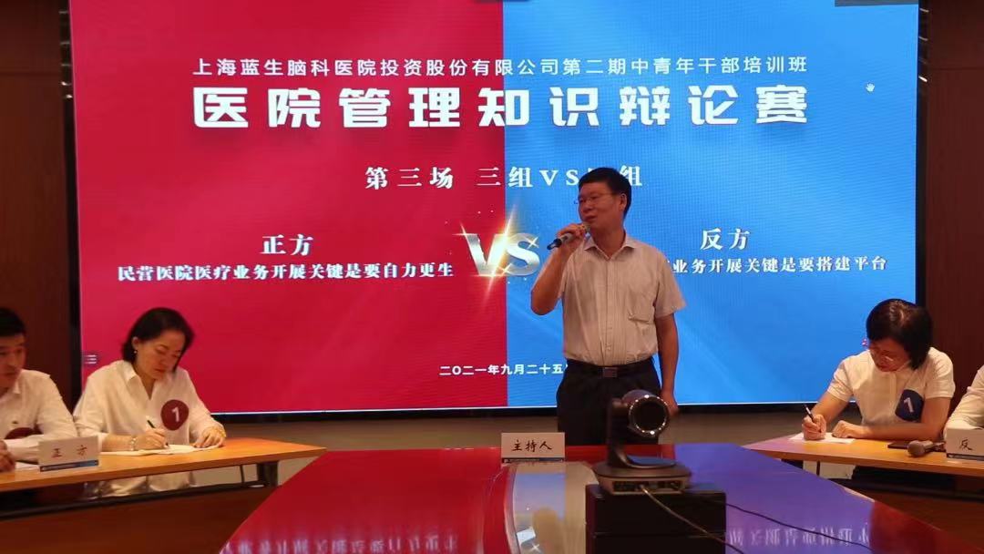 9月25日下午,公司第二期中青班在大會(huì)議室舉辦醫(yī)院管理知識(shí)辯論賽。辯論賽圍繞醫(yī)院管理設(shè)置3組辯題,旨在提升學(xué)員的語(yǔ)言表達(dá)、分析判斷、邏輯思維和臨場(chǎng)應(yīng)變能力,展現(xiàn)學(xué)員智慧風(fēng)采,營(yíng)造學(xué)習(xí)研討氛圍。來(lái)自5個(gè)小組的6支隊(duì)伍參加,成都、深圳學(xué)員線上觀摩。中青班指導(dǎo)員陳樹(shù)林出席并點(diǎn)評(píng),中青班班主任劉詩(shī)強(qiáng)主持。
