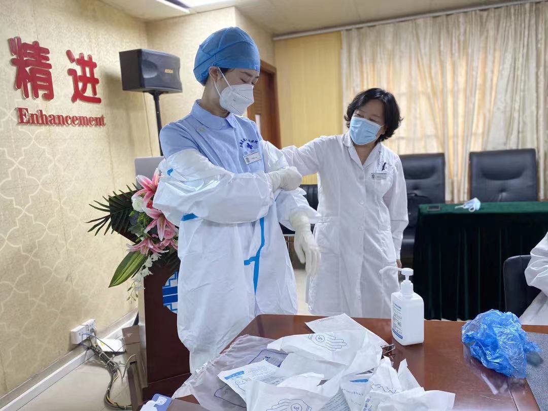 當(dāng)天下午,護(hù)理部主任楊麗萍為隊(duì)員們準(zhǔn)備防護(hù)物資,指導(dǎo)工作方案,開展防控培訓(xùn),確保操作流程標(biāo)準(zhǔn)、高效,防護(hù)到位。