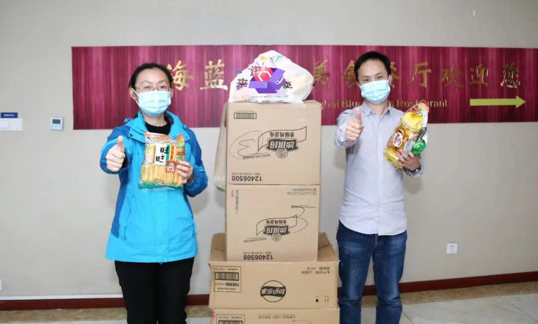 3月29日,在上海藍(lán)十字腦科醫(yī)院工會的組織下,醫(yī)院總經(jīng)理兼黨支部書記朱敏、副總經(jīng)理兼工會主席吳春芳逐一為抗疫員工發(fā)放慰問物資。這批物資由閔行區(qū)社會醫(yī)療行業(yè)工會捐贈,以慰問為疫情防控工作不懈努力的醫(yī)護(hù)工作者。