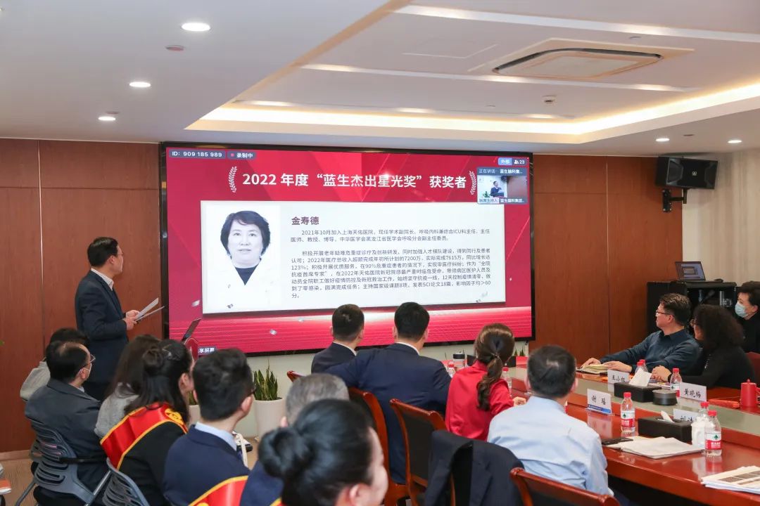 公司始終堅(jiān)持“大業(yè)之本,首在英才”的理念,覆蓋公司各類(lèi)單位和員工,表彰向臨床一線(xiàn)傾斜,牢牢立起“人才第一,以?shī)^斗者為本”的鮮明導(dǎo)向。陳樹(shù)林書(shū)記通報(bào)公司董事長(zhǎng)卓立強(qiáng)、副總裁兼天佑醫(yī)院院長(zhǎng)蔡劍飛榮獲新希望集團(tuán)40周年特別貢獻(xiàn)獎(jiǎng)的喜報(bào),宣讀公司《關(guān)于表彰2022年度“藍(lán)生星光獎(jiǎng)”獲獎(jiǎng)?wù)叩耐▓?bào)》,授予劉青樂(lè)等4人“藍(lán)生杰出星光獎(jiǎng)”,王紅等11人“經(jīng)營(yíng)管理之星”、李明峰等12人“學(xué)科貢獻(xiàn)之星”、廖紅宇等14人“優(yōu)質(zhì)服務(wù)之星”、翁堅(jiān)等3人“忠誠(chéng)敬業(yè)之星”、王坤偉等9人“青年希望之星”,同濟(jì)大學(xué)附屬天佑醫(yī)院神經(jīng)內(nèi)一科等3個(gè)團(tuán)隊(duì)“藍(lán)生星光團(tuán)隊(duì)獎(jiǎng)”。