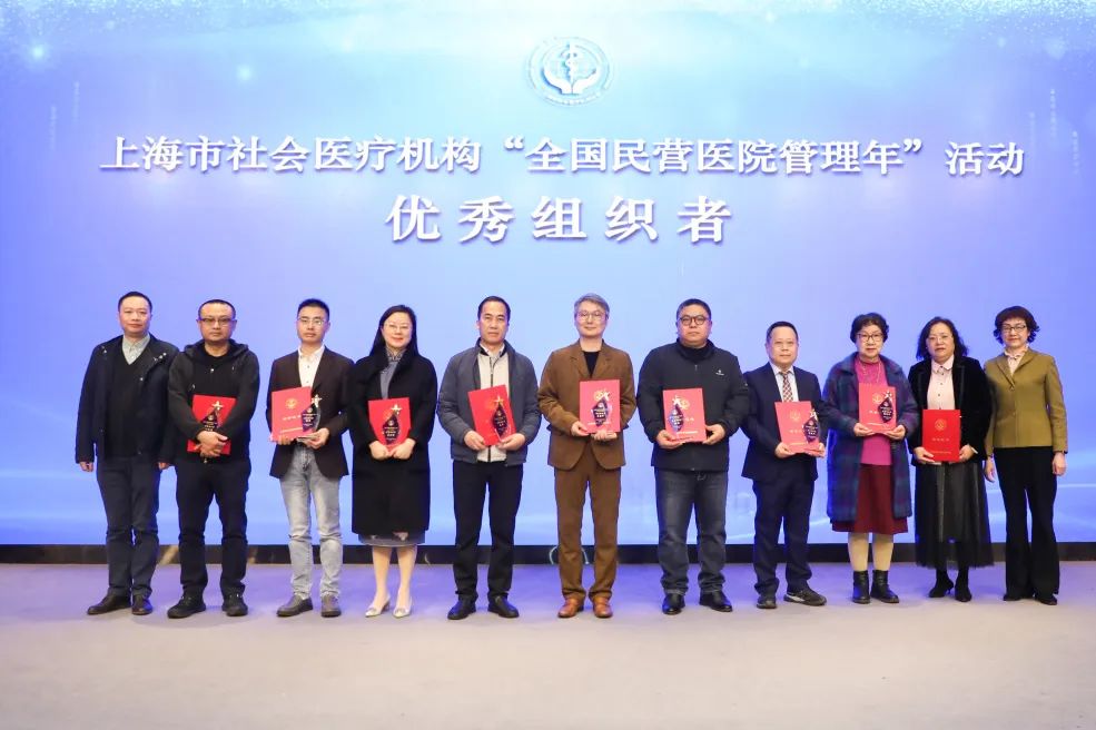 上海萬眾醫(yī)院總經(jīng)理兼黨支部書記徐筱林上臺(tái)領(lǐng)獎(jiǎng)(右四)