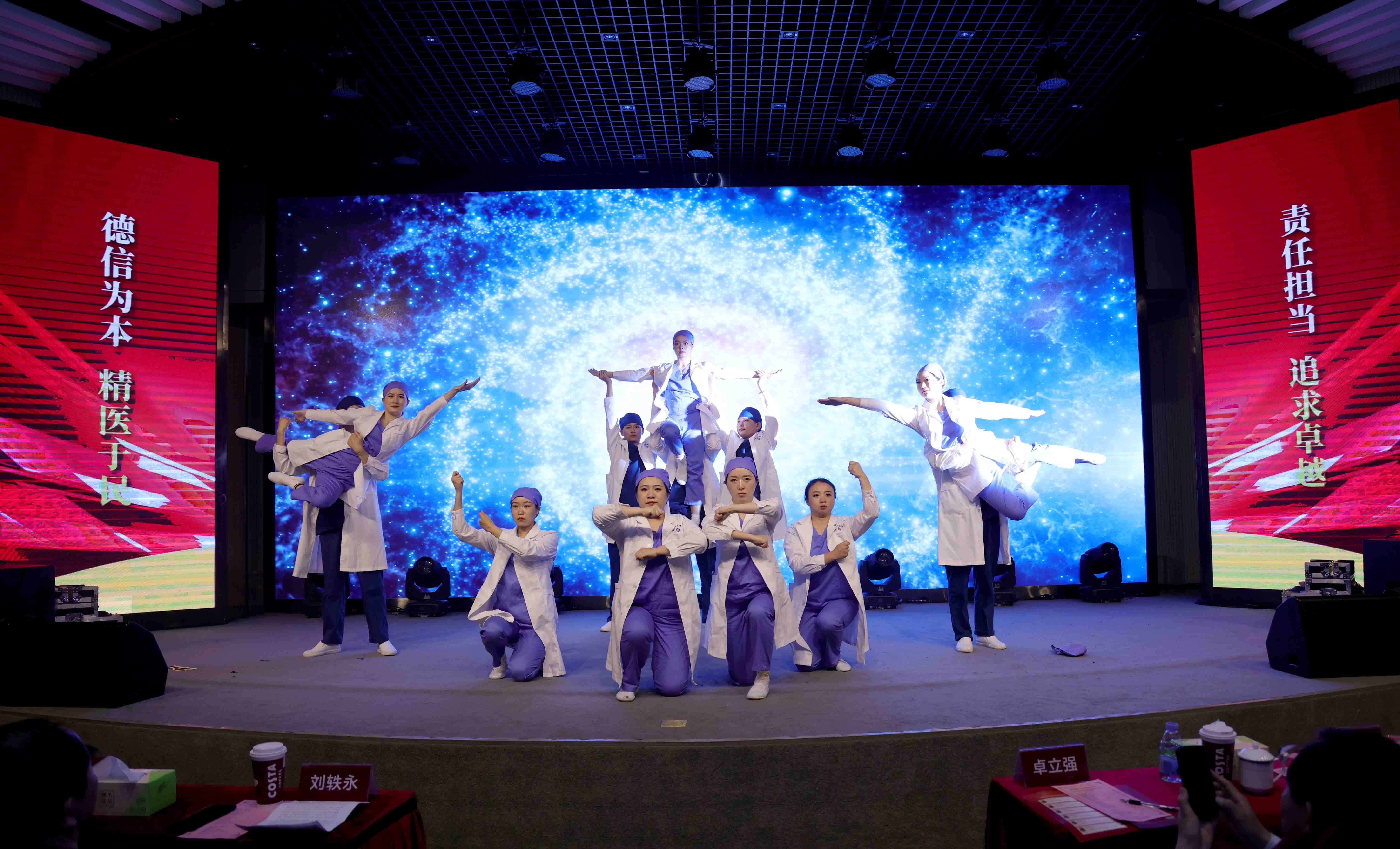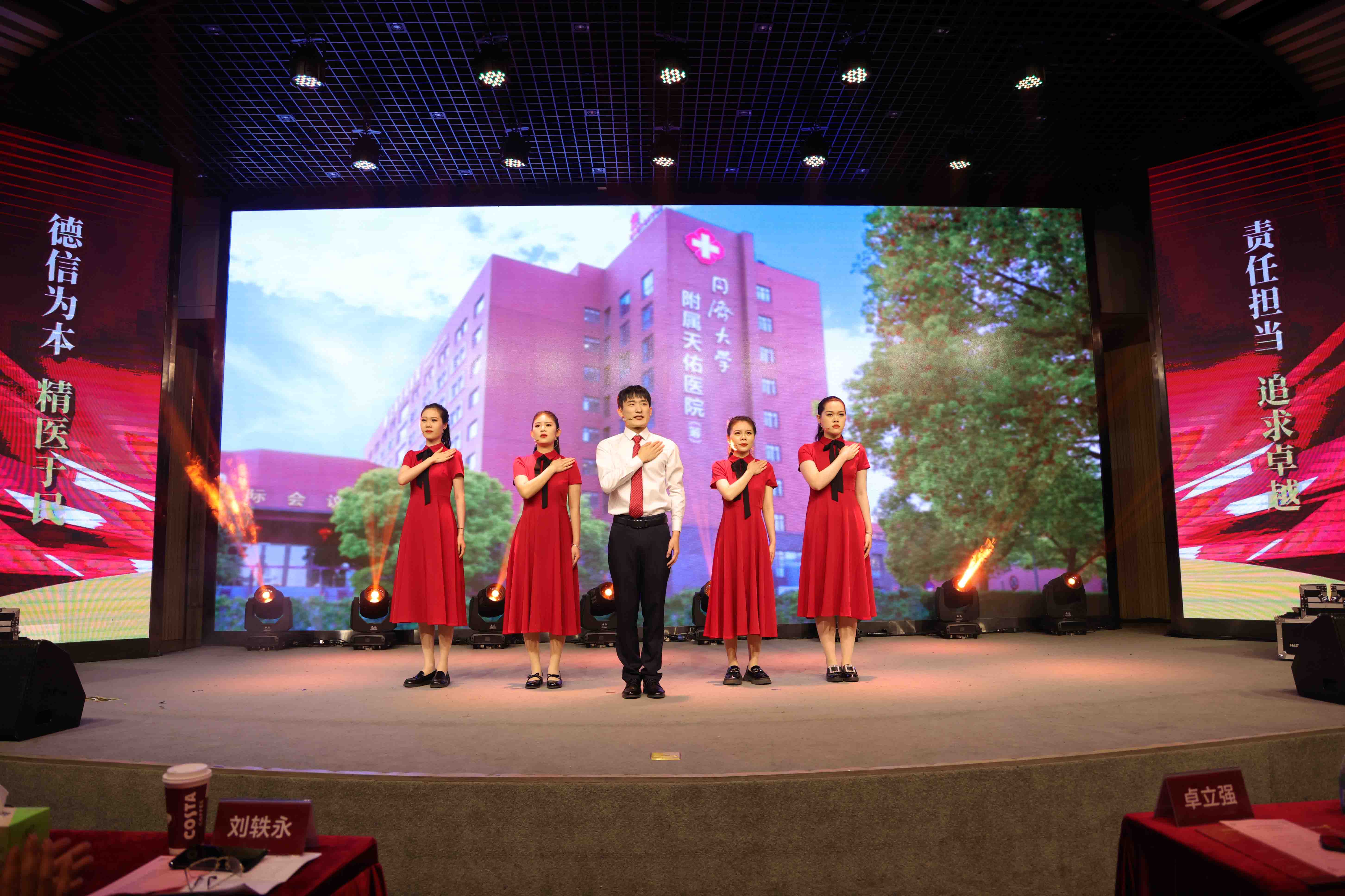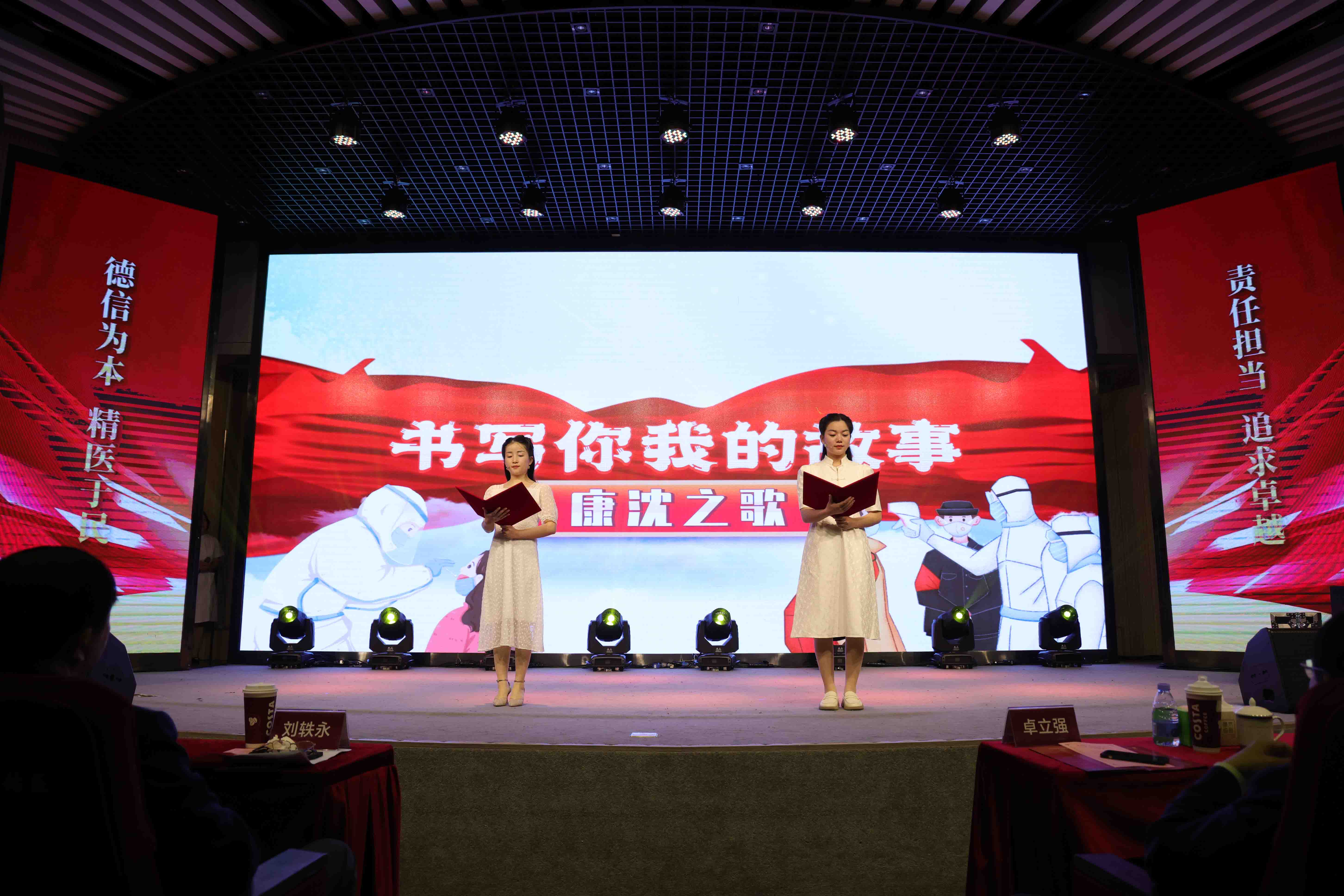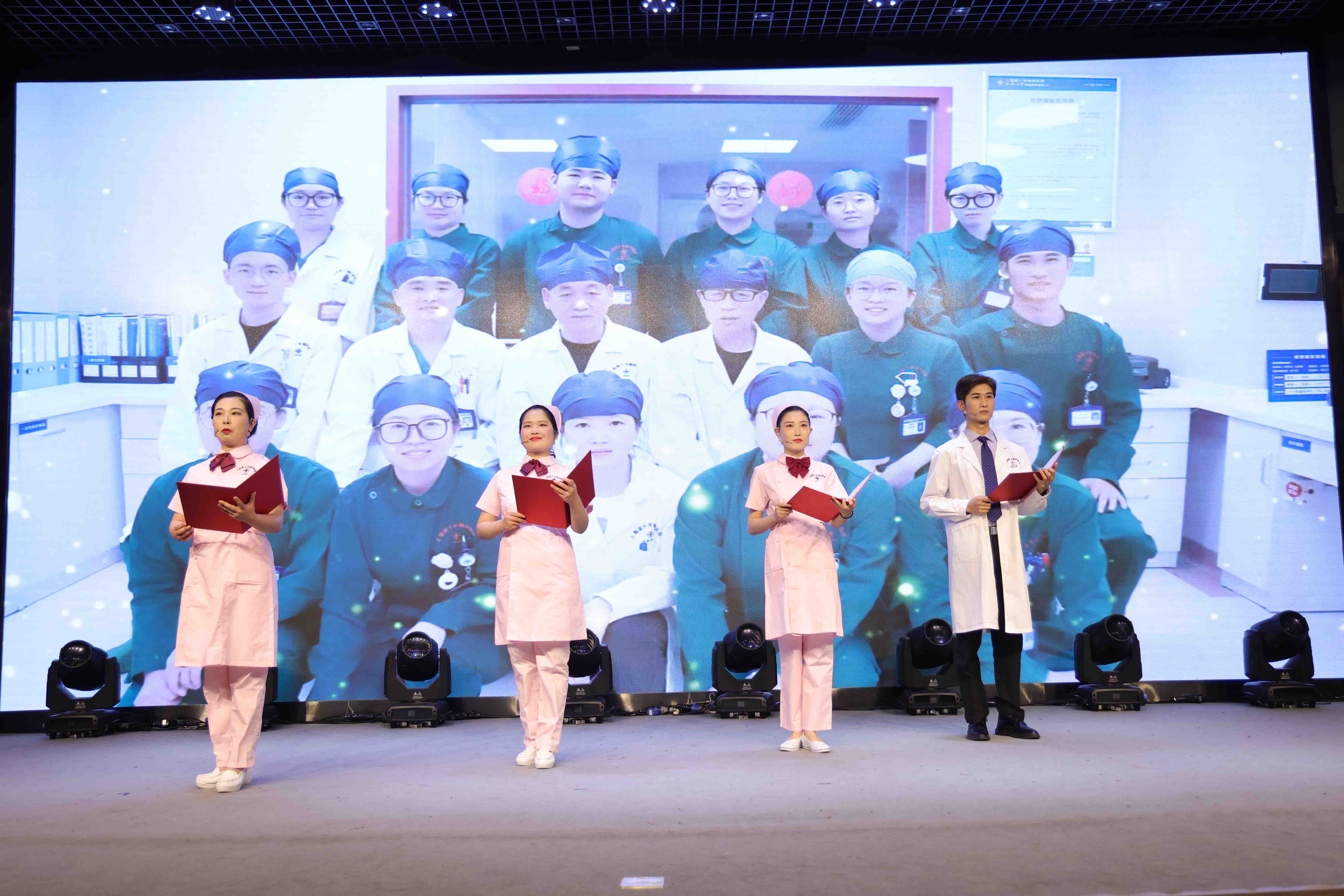 公司領(lǐng)導(dǎo)、機(jī)關(guān)干部,醫(yī)院、子公司班子成員,受表彰的優(yōu)秀集體代表、優(yōu)秀個(gè)人及護(hù)士代表、參賽人員共300余人參加。公司黨群工作部總監(jiān)韓杰、同濟(jì)大學(xué)附屬腦科醫(yī)院手術(shù)室副護(hù)士長(zhǎng)王亞萍主持。