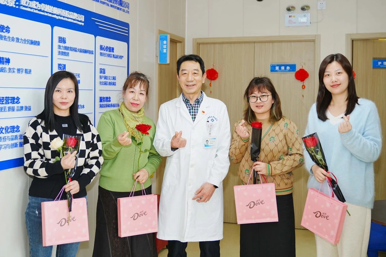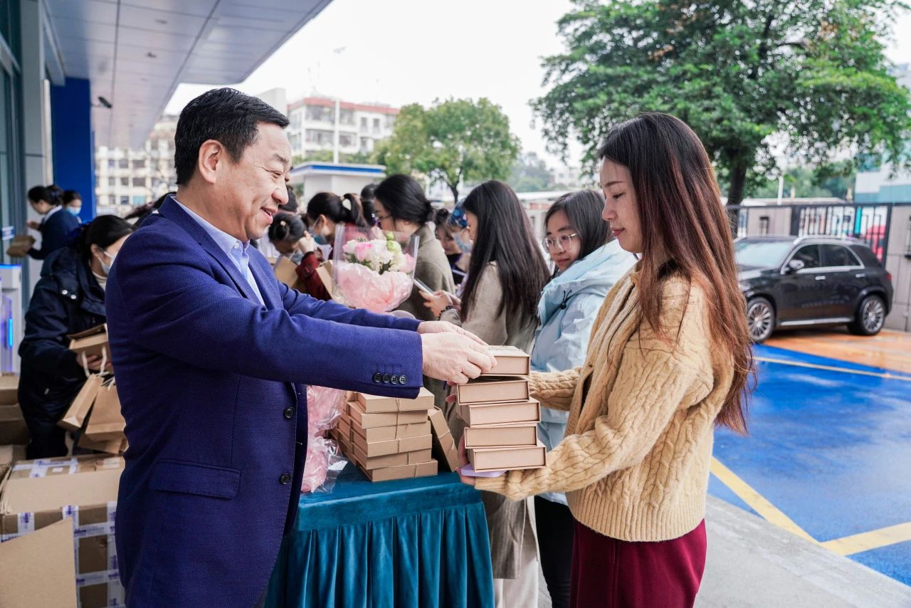 7日,深圳藍生腦科醫(yī)院領導在住院大樓前,為340余名女員工送上節(jié)日禮品和鮮花,并送上溫馨的節(jié)日祝福與親切問候。