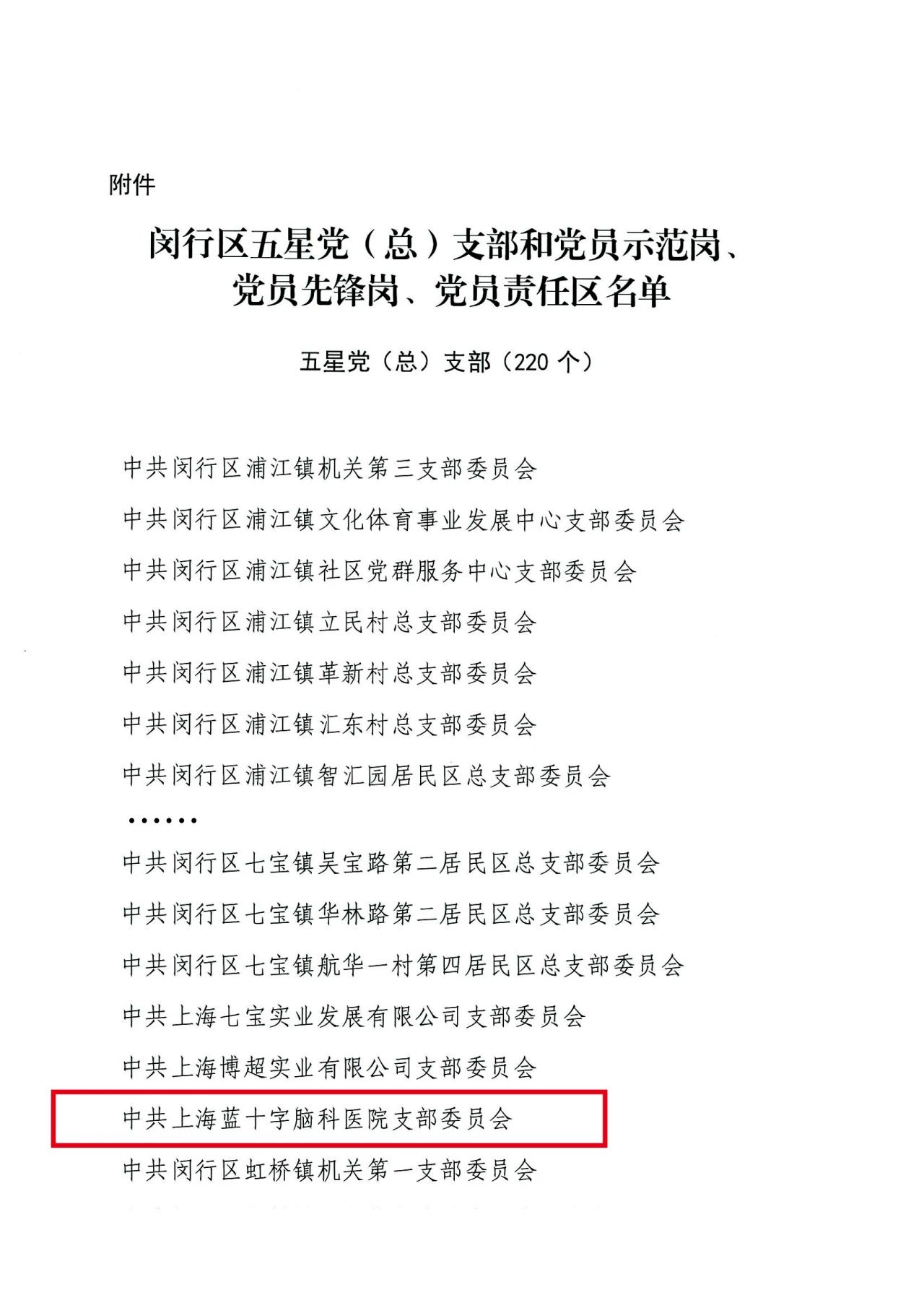 6月23日,為進(jìn)一步發(fā)揮先進(jìn)典型的示范引領(lǐng)作用,更好激勵(lì)各級(jí)黨組織和廣大黨員奮進(jìn)新征程、建功新時(shí)代,經(jīng)中共上海市閔行區(qū)委組織部研究決定:命名中共閔行區(qū)江川路街道安寧路第一居民區(qū)總支部委員會(huì)等220個(gè)黨(總)支部為“五星黨(總)支部”。中共上海藍(lán)十字腦科醫(yī)院支部委員會(huì)榜上有名。