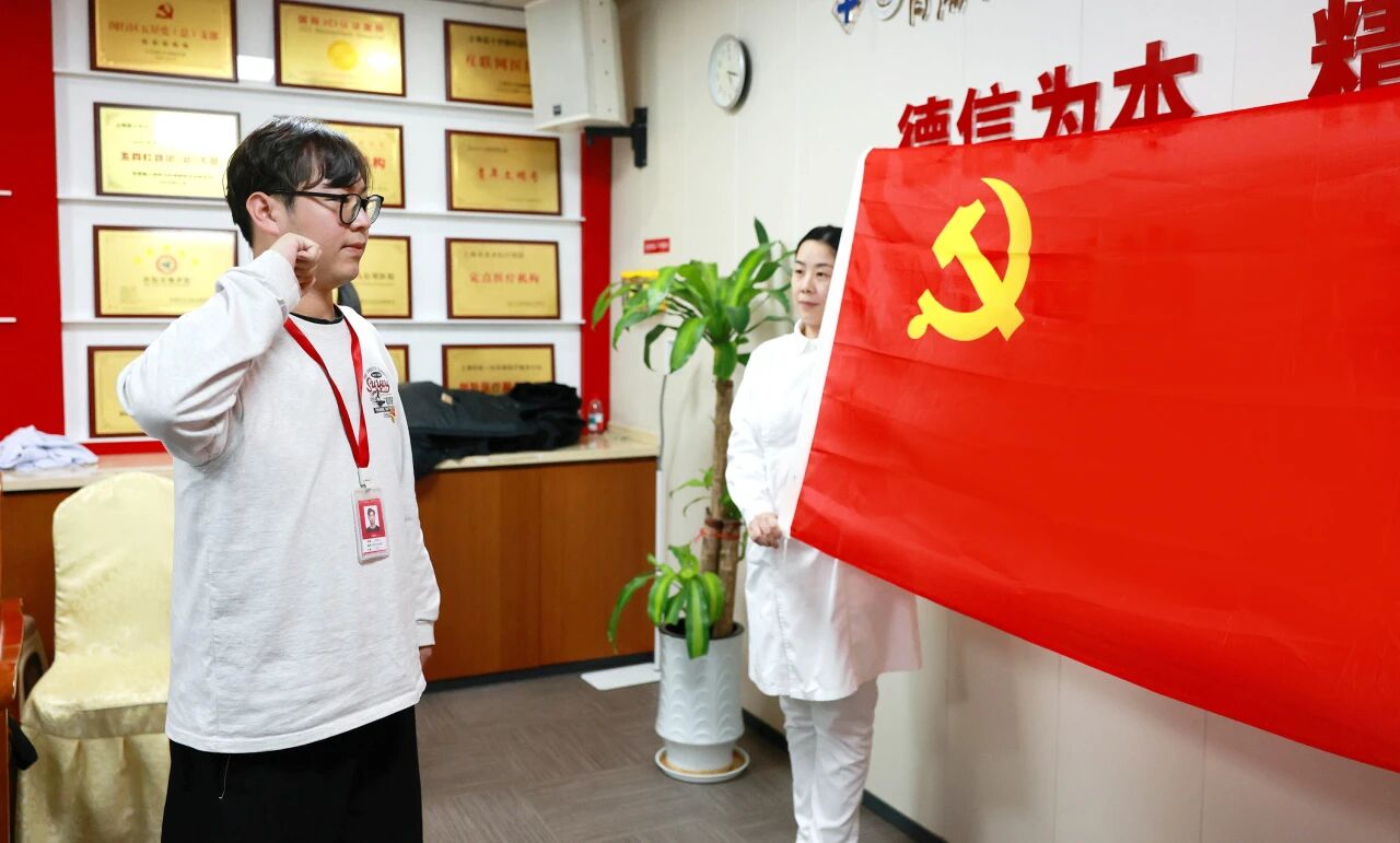 在朱敏書記的領(lǐng)誓下,預(yù)備黨員盧盟杰佩戴黨徽,面向鮮紅的中國共產(chǎn)黨黨旗,舉起右拳莊嚴(yán)宣誓:“我志愿加入中國共產(chǎn)黨,擁護(hù)黨的綱領(lǐng),遵守黨的章程……”鏗鏘有力的誓言回蕩在會(huì)議室,不僅表達(dá)了盧盟杰同志對(duì)黨的無限忠誠和為共產(chǎn)主義事業(yè)奮斗終身的堅(jiān)定決心,也讓在場每一位黨員再次接受了深刻的精神洗禮。
