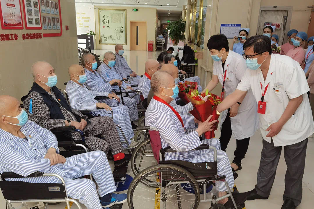 書(shū)記、院長(zhǎng)與17位老黨員促膝談心,詳細(xì)詢問(wèn)他們的生活情況和身體狀況,傾聽(tīng)他們的初心故事,學(xué)習(xí)他們的奮斗精神,感受共產(chǎn)黨人精神血脈的賡續(xù),對(duì)他們?yōu)樽鎳?guó)建設(shè)和發(fā)展做出的突出貢獻(xiàn)表示崇高敬意,并希望他們?cè)卺t(yī)院安心治療、早日康復(fù)。