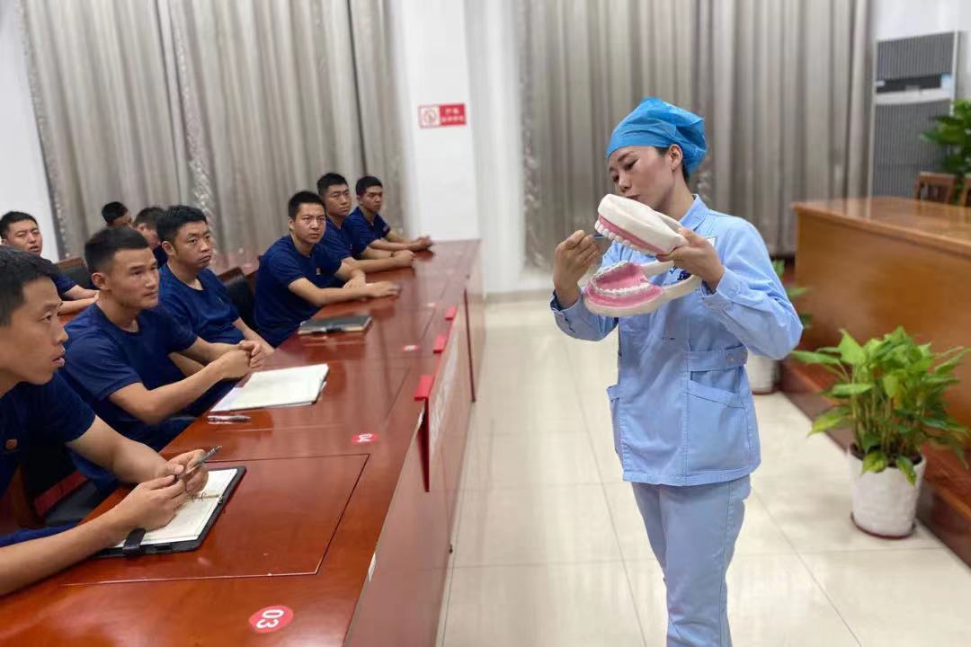 簽約儀式結(jié)束后,醫(yī)院“藍(lán)生健康行”講師團(tuán)成員、口腔科護(hù)士骨干王秋實(shí)為與會(huì)消防指戰(zhàn)員作口腔健康科普講座。