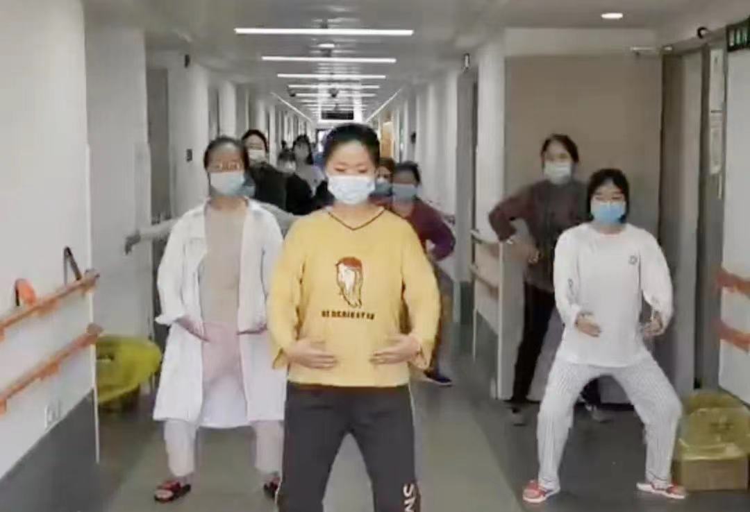 肖建書記介紹,方艙醫(yī)院的護(hù)理工作并不簡單,總結(jié)起來就是工作量大、事情繁雜、風(fēng)險(xiǎn)也要比醫(yī)院大。一整套防護(hù)服穿在身上,工作起來至少六個(gè)小時(shí)不停歇,不能吃飯喝水,不能上廁所,除了為患者提供常見的醫(yī)療服務(wù)外,還要做好病人的生活護(hù)理和心理疏導(dǎo),緩解他們的情緒。很多老人們?cè)谂摾锏臅r(shí)間長了,會(huì)有些焦慮,王露露就和大家一起陪病人聊天,王露露還把康復(fù)醫(yī)學(xué)科的“八段錦”帶進(jìn)方艙,稍有空閑就傳授這一“絕技”。
