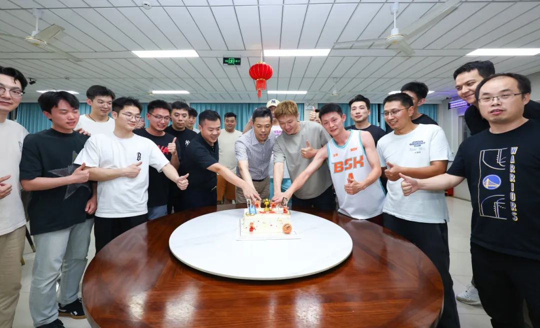為慶祝男籃奪冠,7月9日,參賽隊員們在院內(nèi)共同舉行了慶祝儀式。