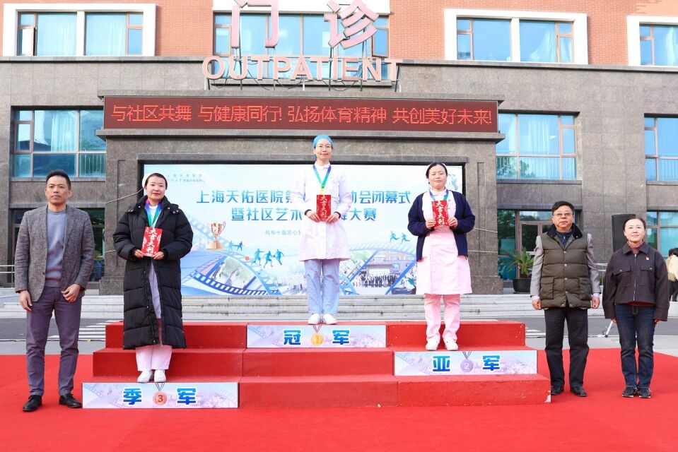 11 月 27 日下午,上海天佑醫(yī)院南廣場(chǎng)彩旗飄揚(yáng)、歡聲雷動(dòng),為期兩周的“上海天佑醫(yī)院第五屆運(yùn)動(dòng)會(huì)”勝利閉幕。在閉幕式上,舉行了拔河復(fù)賽和決賽,11支來(lái)自社區(qū)的舞蹈隊(duì)激情獻(xiàn)舞。桃浦鎮(zhèn)總工會(huì)主席張文應(yīng)邀參加閉幕式,與天佑醫(yī)院蔡劍飛院長(zhǎng)、卓立峰總經(jīng)理等院領(lǐng)導(dǎo)一起,共同為參賽代表隊(duì)和運(yùn)動(dòng)員頒獎(jiǎng)。