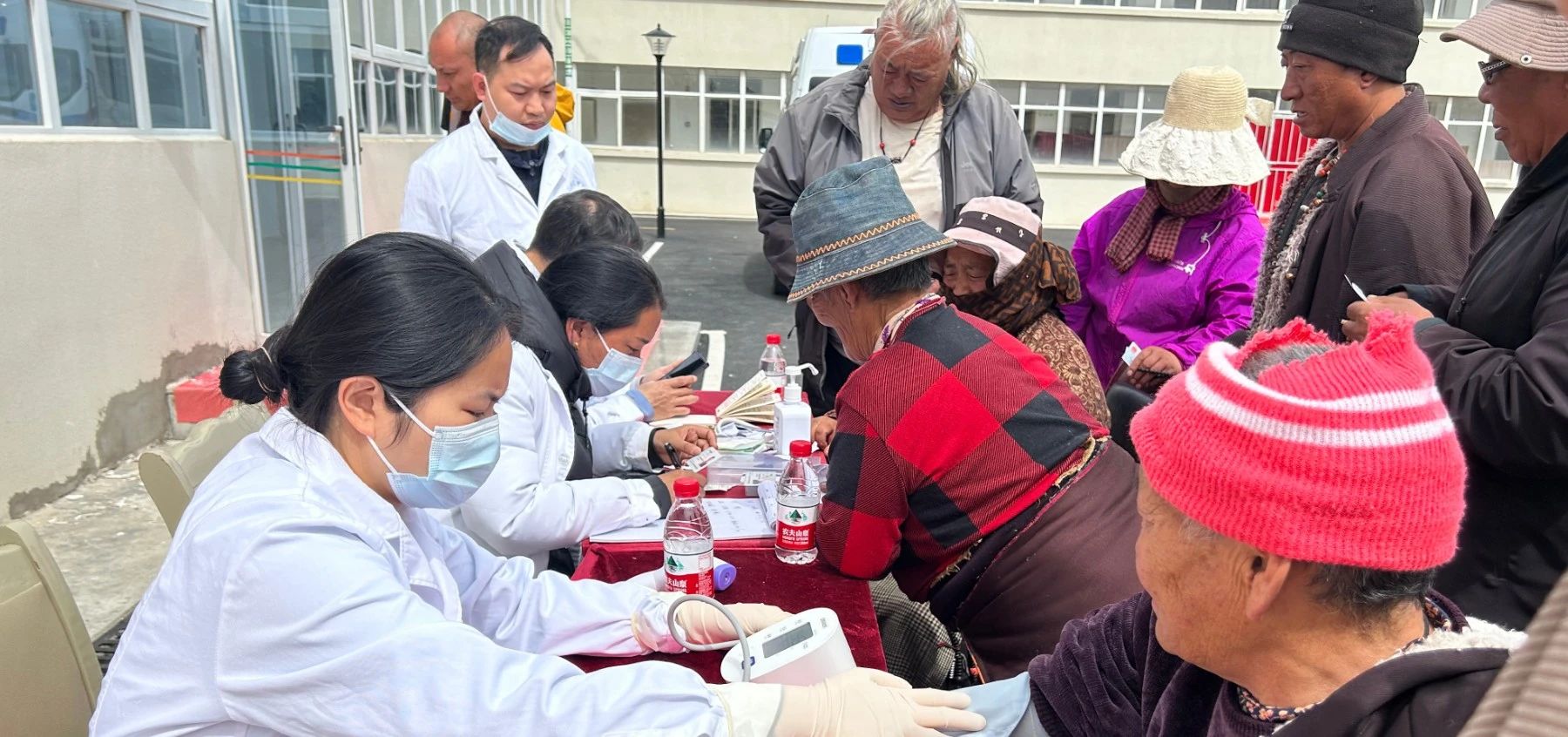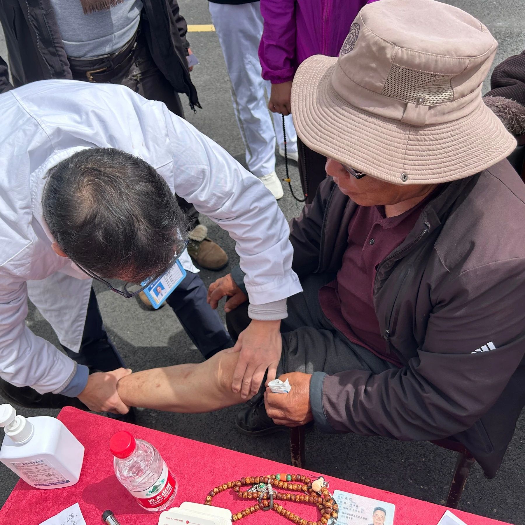 義診現(xiàn)場(chǎng),段勇將主任帶領(lǐng)醫(yī)療小組有條不紊地開(kāi)展工作。他們俯身細(xì)致檢查每一位患者的膝關(guān)節(jié)、髖關(guān)節(jié)及腰椎狀況,精準(zhǔn)診斷疾病隱患;護(hù)士們?yōu)榫用駵y(cè)量血壓,一邊輕聲安撫緊張的老人,一邊快速記錄健康數(shù)據(jù);藏漢雙語(yǔ)翻譯穿梭于人群中,用藏語(yǔ)輕聲傳遞醫(yī)生的專業(yè)診斷和治療建議以及“減少負(fù)重勞作”“注意關(guān)節(jié)保暖” 等醫(yī)囑,鼓勵(lì)他們樹(shù)立戰(zhàn)勝疾病的信心。