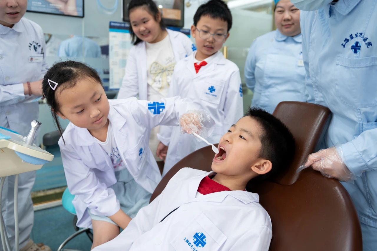 在醫(yī)護人員的悉心指導(dǎo)下,身著迷你工作服的孩子們走進診室,瞬間進入角色,變身為“小牙醫(yī)”。他們兩兩一組,互相檢查牙齒,用口鏡仔細觀察“患者”的牙齒狀況,并模仿醫(yī)生的口吻給出專業(yè)的建議。“這顆牙縫里有食物殘渣,要好好刷牙哦!”“這里發(fā)黑了,可能是蛀牙。”孩子們在角色轉(zhuǎn)換中不僅消解了對牙科的恐懼,還從實踐中掌握了護齒技能,更在心中種下了成為一名醫(yī)生的夢想種子。