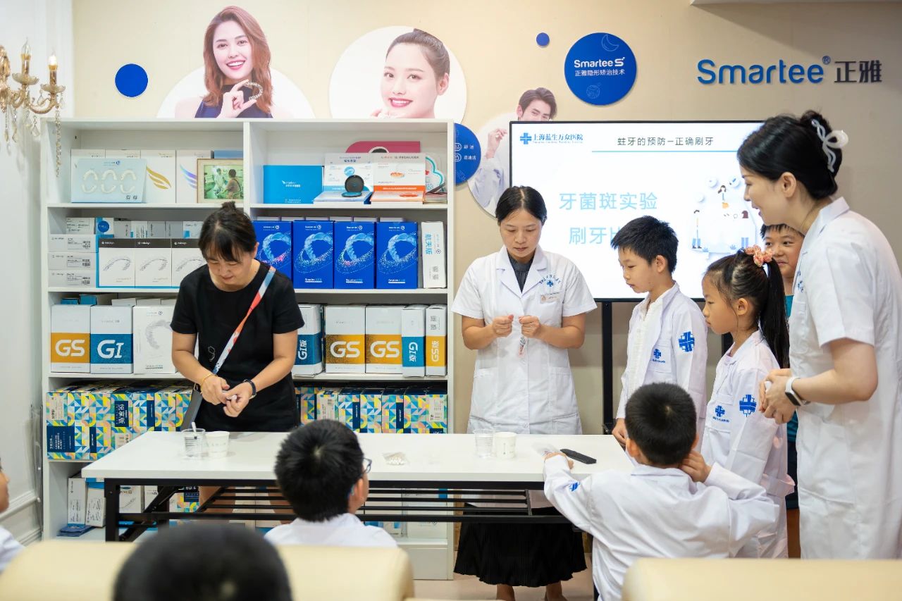 為深入普及兒童口腔健康知識,積極倡導(dǎo)健康生活方式,提升社區(qū)兒童的口腔保健意識,上海藍生萬眾醫(yī)院于7月29日上午成功舉辦了一場別開生面的“小小牙醫(yī),如‘齒’有趣”職業(yè)體驗活動。此次活動吸引了來自徐家匯街道東塘居委和西塘居委的20名小朋友參與,他們在余美香、沈佳樑書記及社工的全程陪護下,身著白大褂,化身“小牙醫(yī)”,在趣味科普與職業(yè)實踐中探索牙齒的奧秘,收獲了一份難忘的暑期健康記憶。