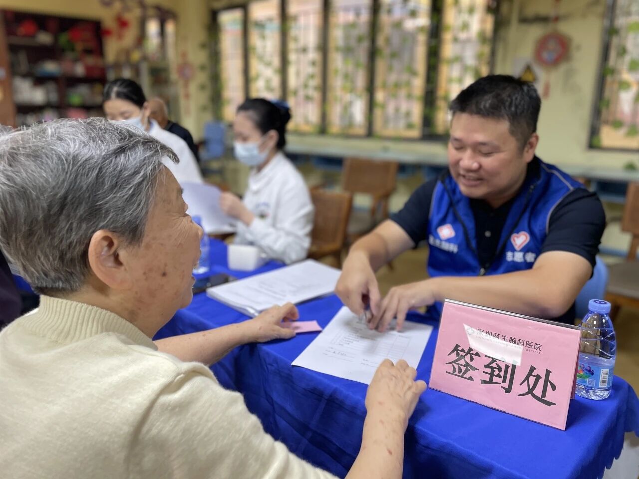 活動在晚晴苑養(yǎng)護(hù)院內(nèi)有序開展。為確保篩查流程的高效與舒適,現(xiàn)場采用人性化的分時段、取號排隊(duì)模式。在醫(yī)院工作人員的引導(dǎo)下,30位長者依次領(lǐng)取個人健康檔案,進(jìn)入檢查流程,整個過程靈活調(diào)度、井然有序,讓長者們感受到被尊重與關(guān)懷。