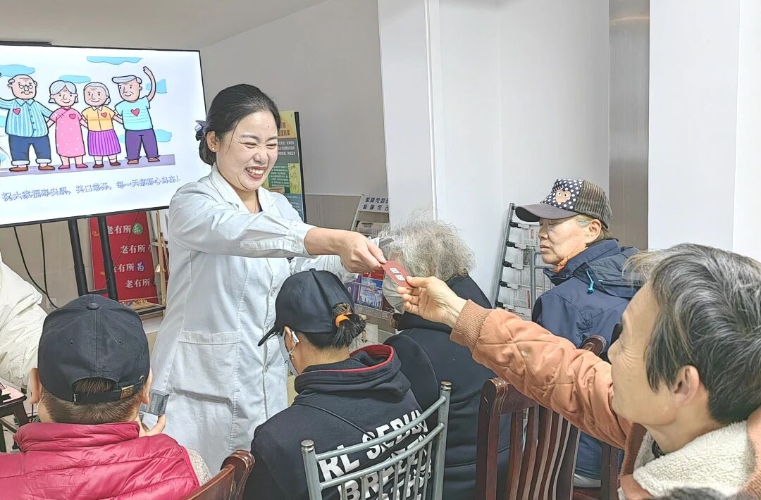 冬季天寒,血管易收縮,這一特性使得老人的血壓、血糖更易出現(xiàn)波動(dòng),做好居家監(jiān)測(cè)和防護(hù)就顯得尤為重要。為此,任海燕現(xiàn)場(chǎng)指導(dǎo)老人們正確測(cè)量血壓、血糖,幫助掌握居家健康監(jiān)測(cè)技能。